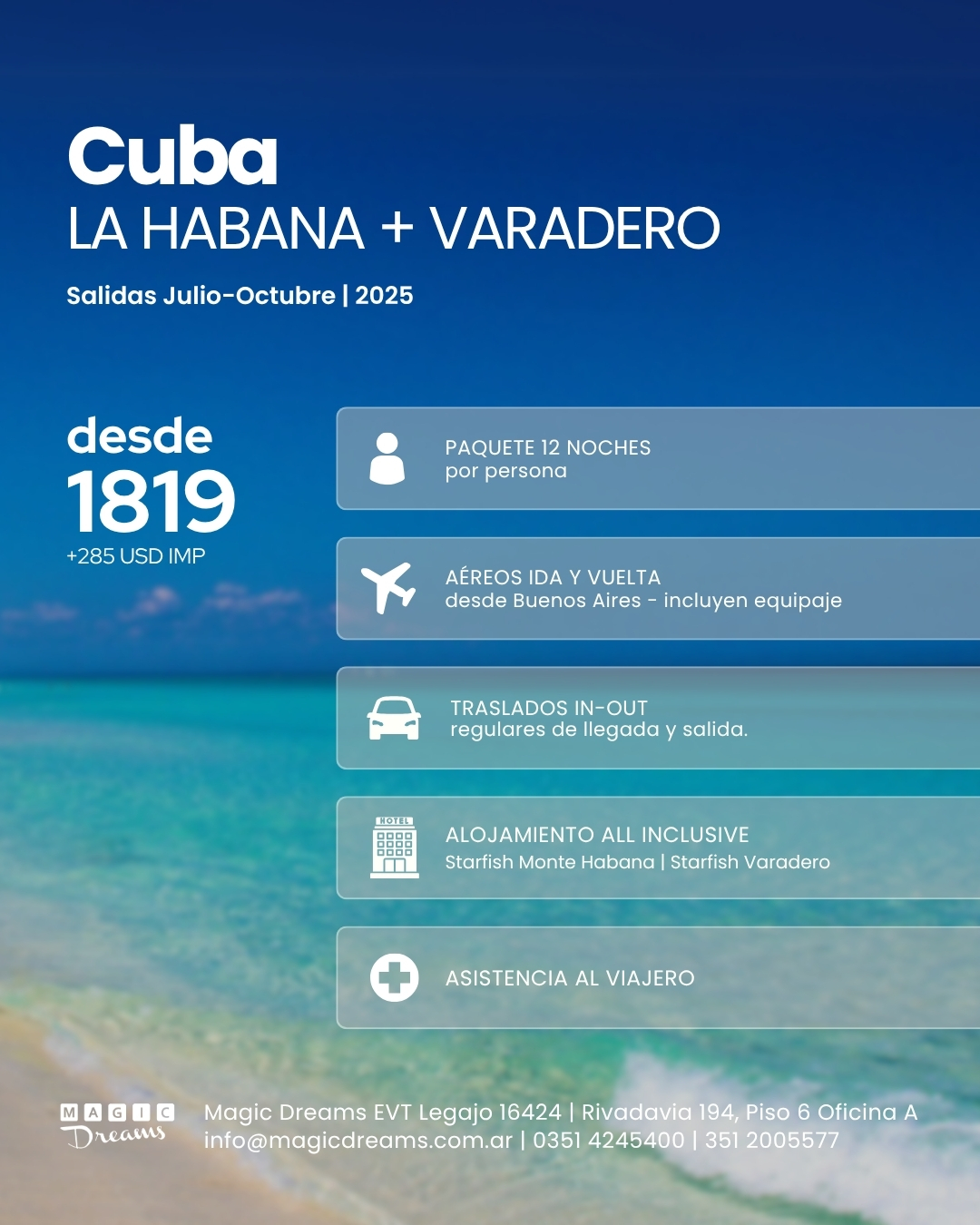 Magic Dreams diseña viajes únicos para vos: Caribe, Europa, USA, Sudamérica y Argentina. Atención personalizada desde Córdoba. Consultá tu próximo destino.